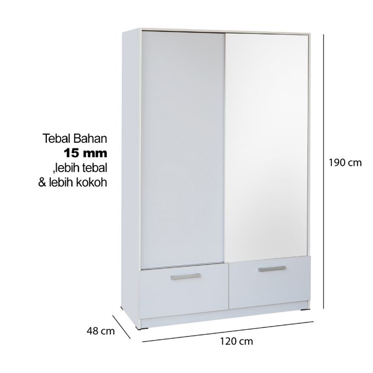 Kirana Lemari Pakaian Sliding Wardrobe 2 Pintu Cermin Omaha