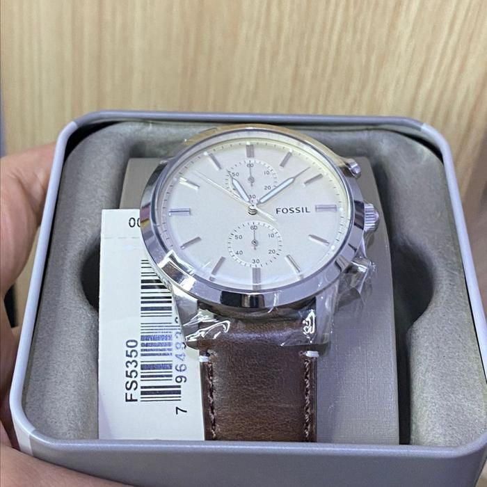 JAM TANGAN PRIA FOSSIL FS5350 / FS 5350 SILVER BROWN LEATHER FREE ONGKIR - FREE BOX
