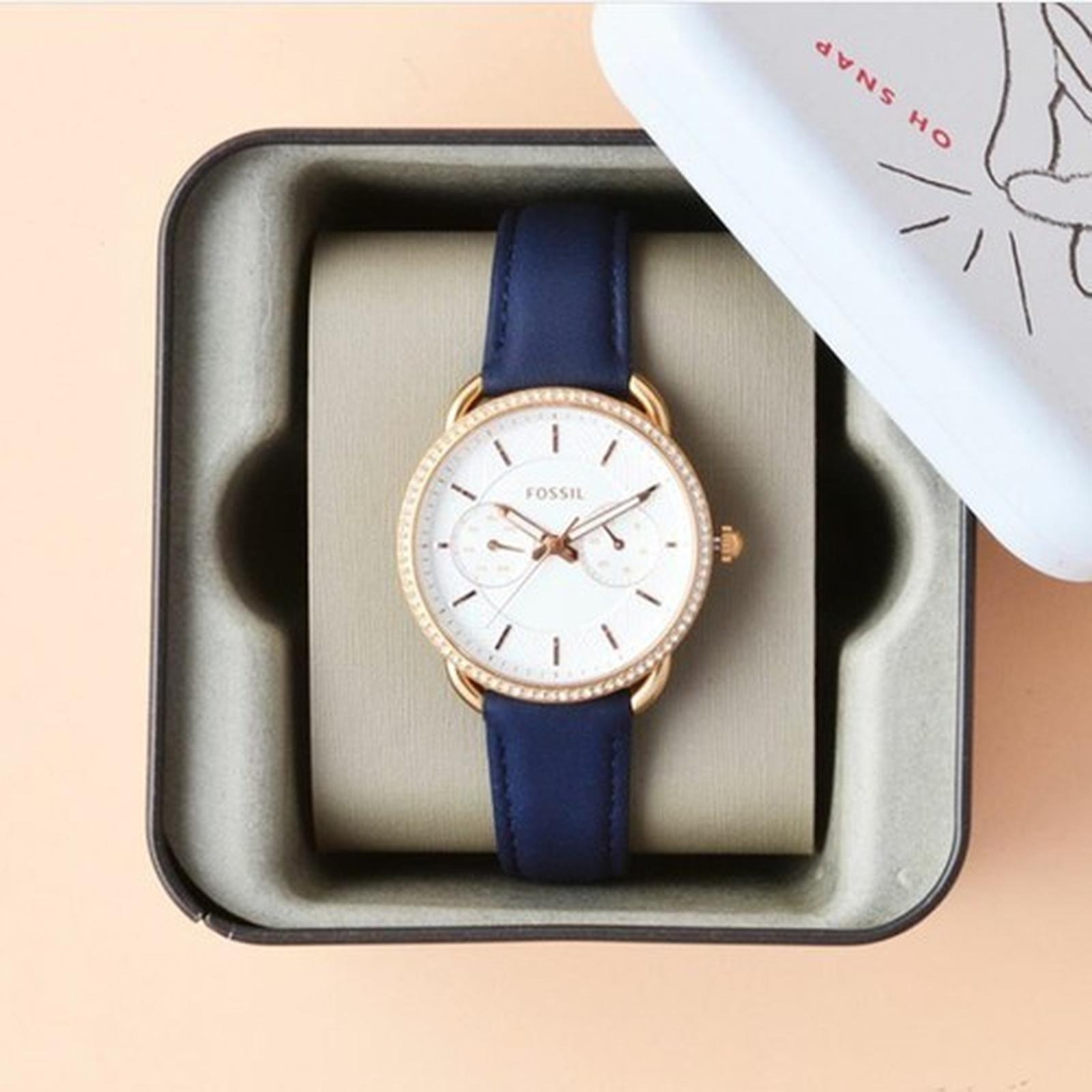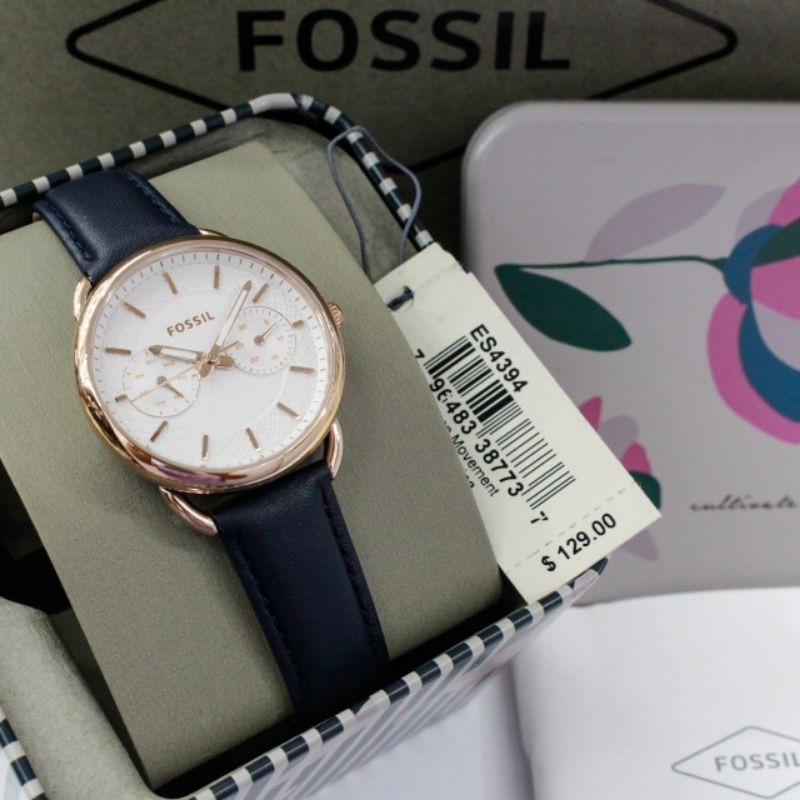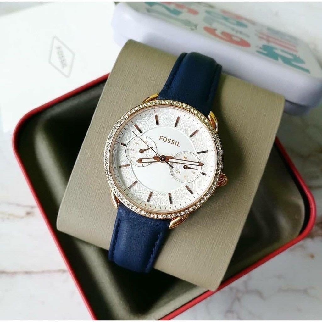 JAM TANGAN WANITA FOSSIL ES4394 / ES 4394 ROSEGOLD BLUE LEATHER FREE ONGKIR - FREE BOX