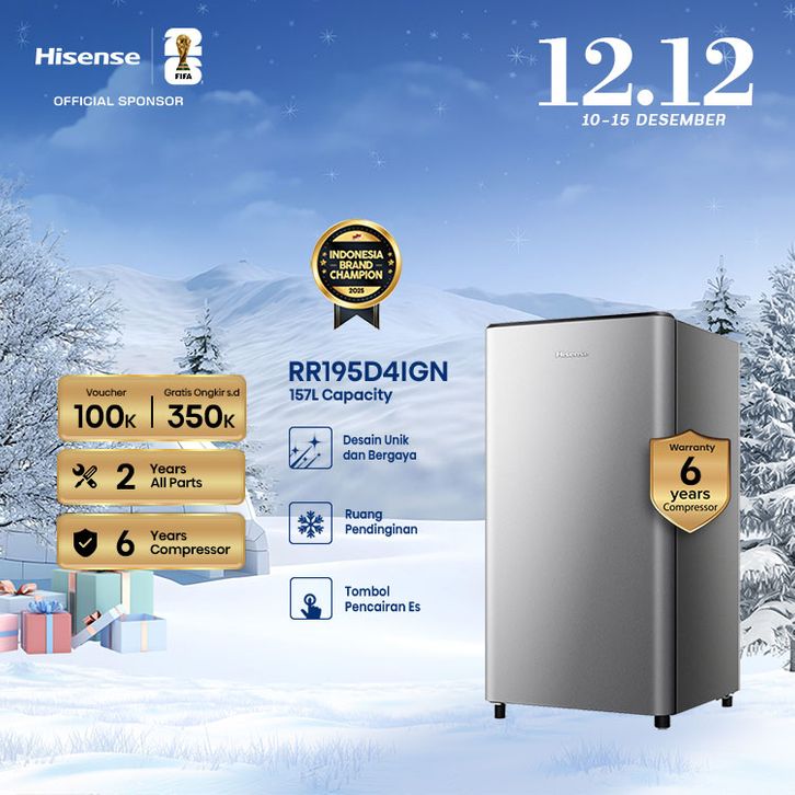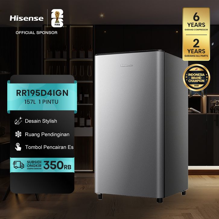 Hisense Kulkas (Refrigerator) Kapasitas 157L 1 Pintu RR195D4IGN - Silver