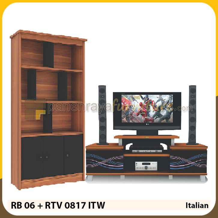 PanenRaya PAKET Rak Buku + Rak TV Minimalis Romaro RB06 + RTV0817 (Italian Walnut)