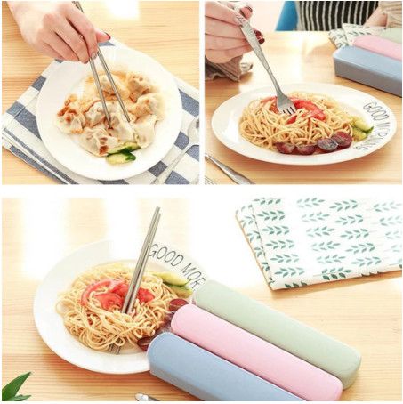 FREE ONGKIR Set Alat Makan Travel Korea Sendok Sumpit Garpu Bahan Stainless Steel