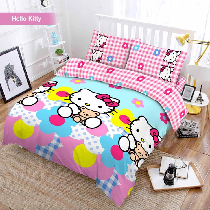 (GRATIS ONGKIR) BEDCOVER DAN SPREI VITO DISPERSE ORIGINAL MOTIF HELLOKITTY 180 x 200 SEPREI BADCOVER BED COVER BETKAPER