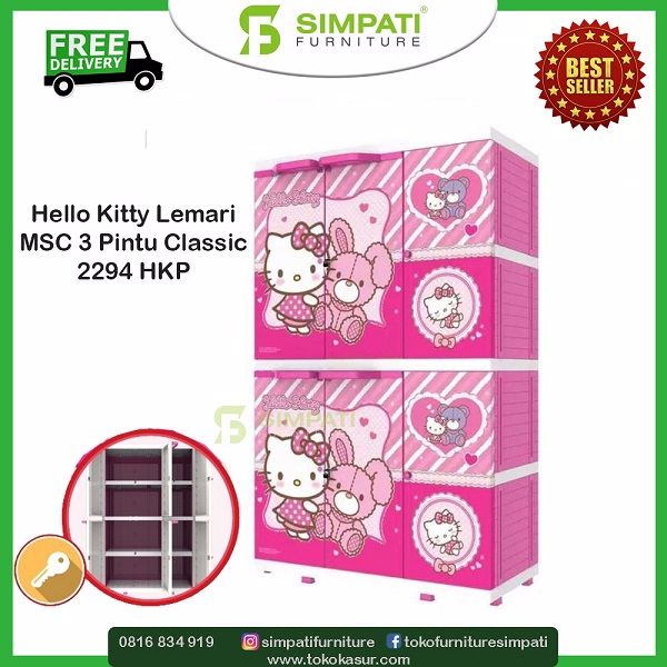 Lemari Plastik Anak 3 Pintu Hello Kitty