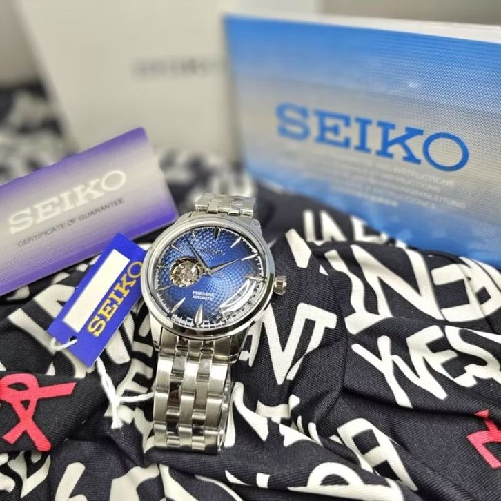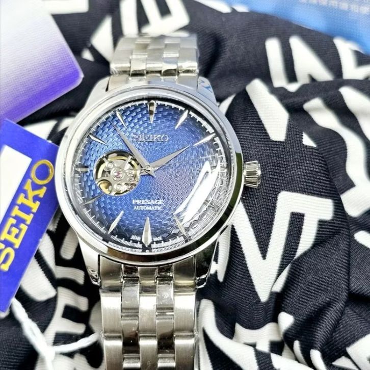 JAM TANGAN PRIA SEIKO PRESAGE SKELETON SILVER BLUE AUTOMATIC ORIGINAL - FREE ONGKIR - FREE BOX ORIGINAL