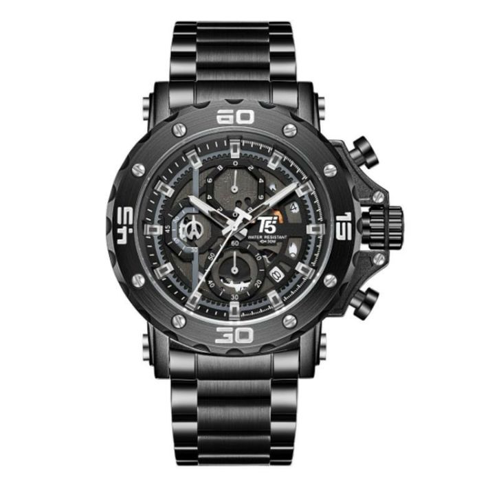Jam Tangan Pria T5 Original H3723 Chronograph Include Box Unik + Paper Bag 3ATM jam tangan t5 cronograph