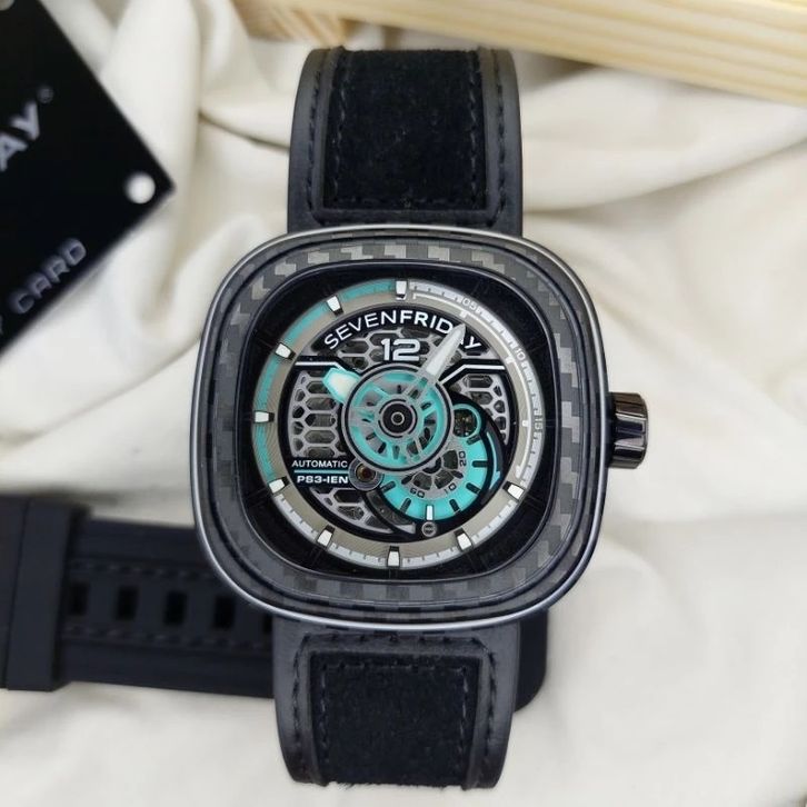 JAM TANGAN PRIA SEVENFRIDAY PS3/01 BLACK GREEN AUTOMATIC- FREE ONGKIR - FREE BOX ORIGINAL