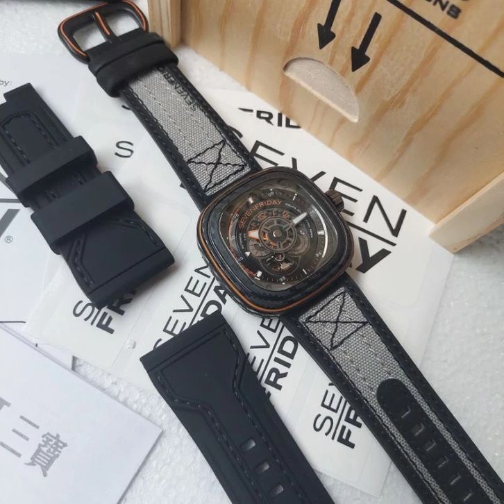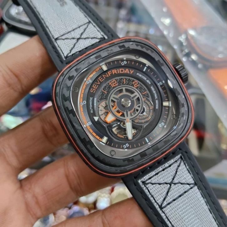 JAM TANGAN PRIA SEVENFRIDAY P3C/09 BLACK GREY CARBON AUTOMATIC- FREE ONGKIR - FREE BOX ORIGINAL