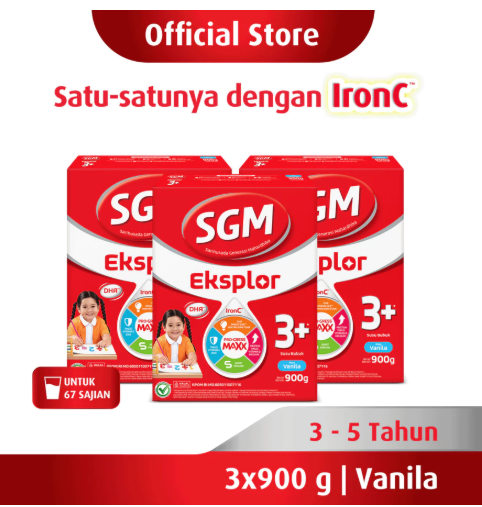 Promo Beli 2 Gratis 1 - SGM Eksplor 3+ Vanila 900gr x 3 pack / Susu Pertumbuhan Anak