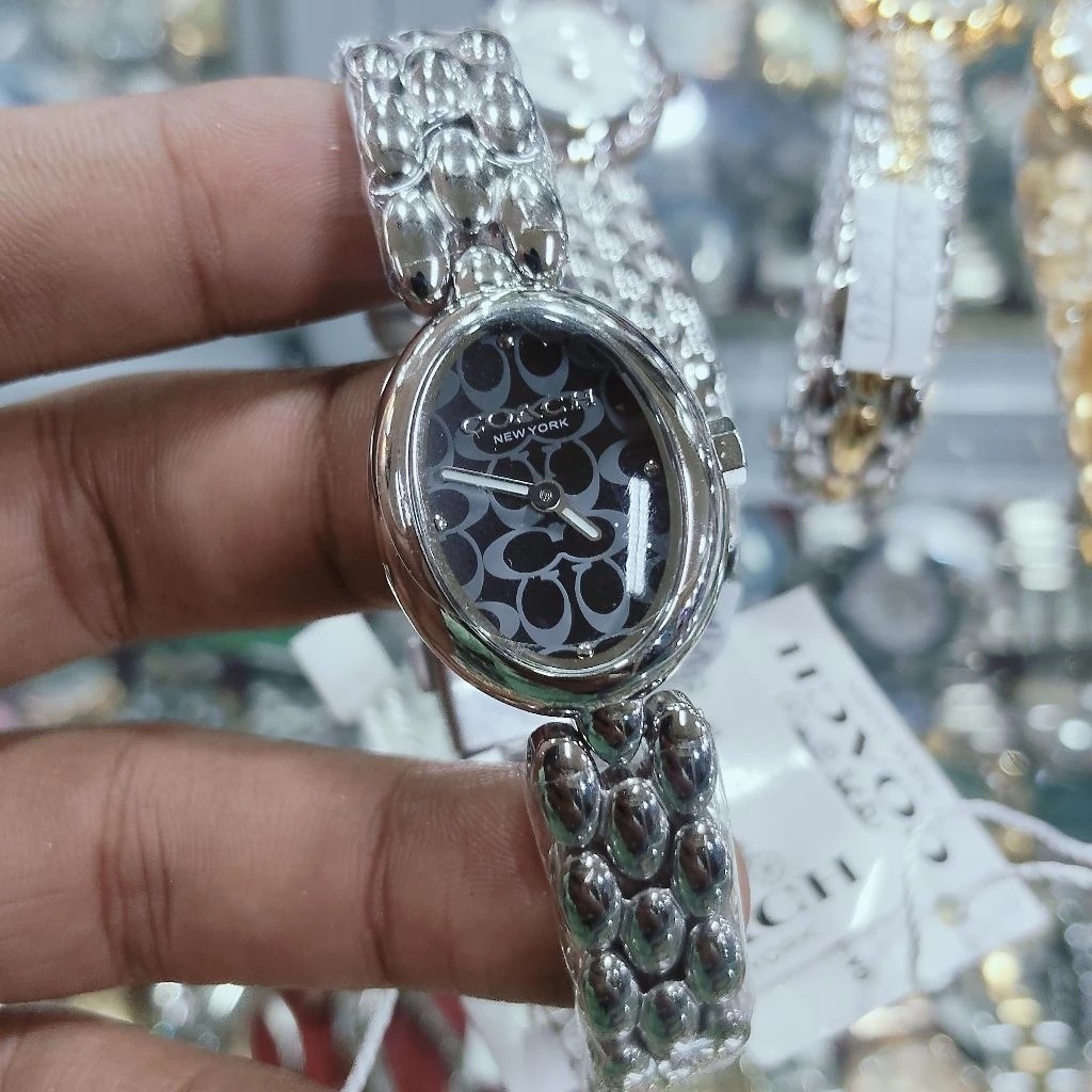 JAM TANGAN WANITA COACH SAMMY MINI OVAL SILVER BLACK STAINLESS STEEL SERIES ORIGINAL FREE ONGKIR - FREE BOX