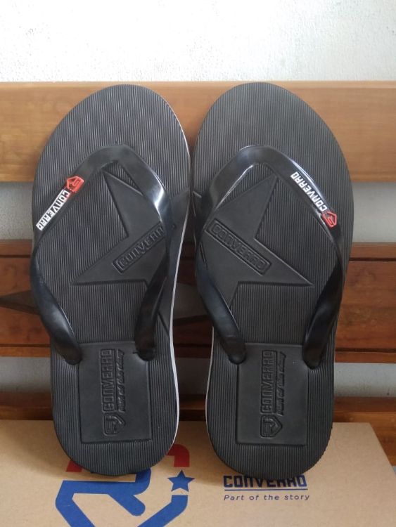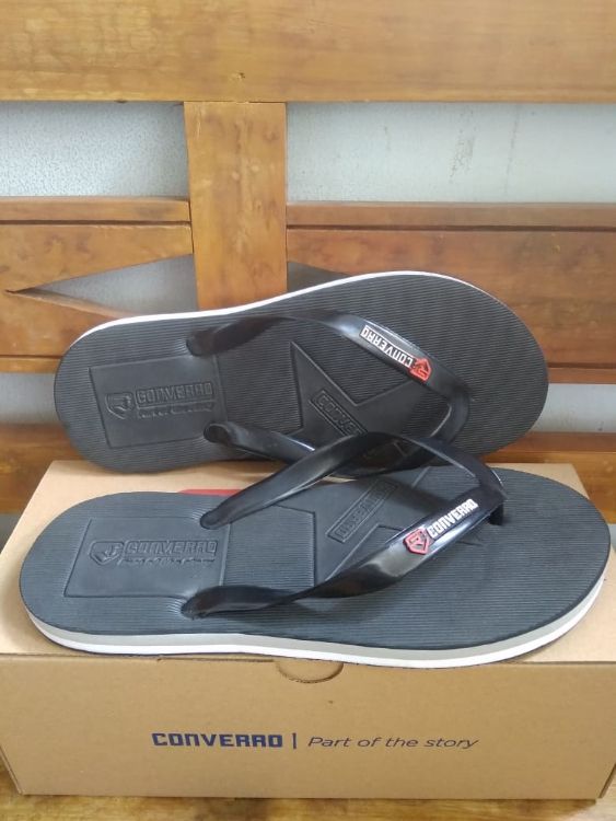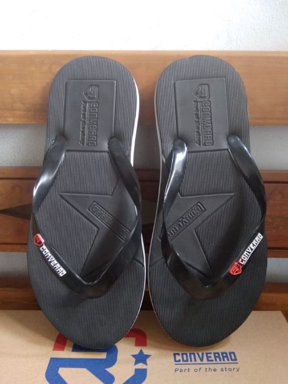 Sandal Distro Murah Casual Converro Wanita Motif Star Bintang Hitam Merah Webbing
