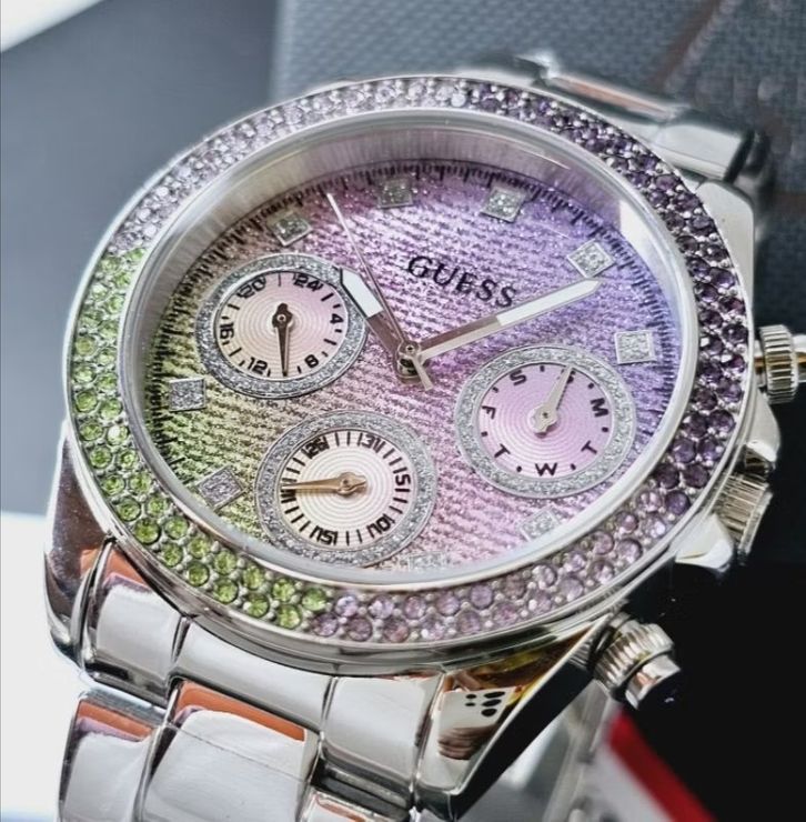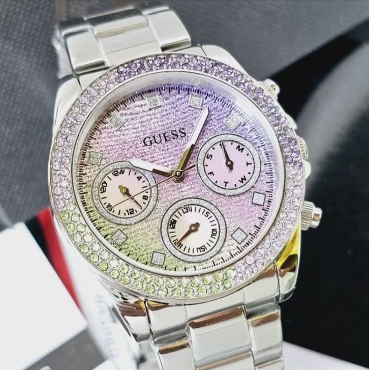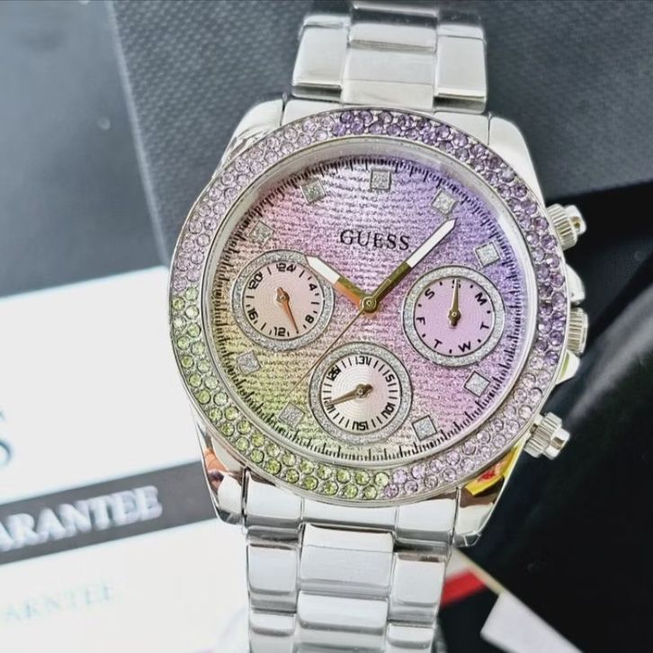 JAM TANGAN WANITA GUESS GW0483L1 SILVER RAINBOW STAINLESS STEEL - FREE ONGKIR - BOX ORIGINAL - GARANSI 1 TAHUN