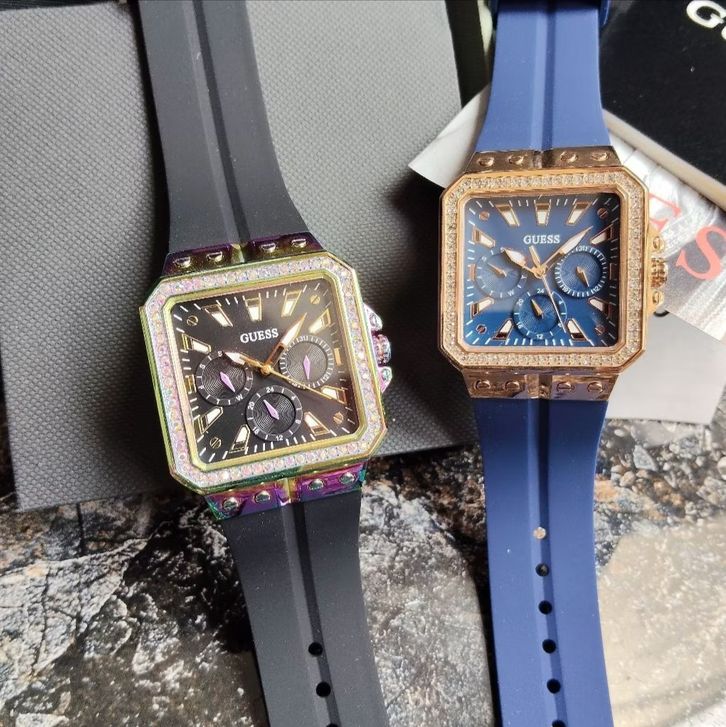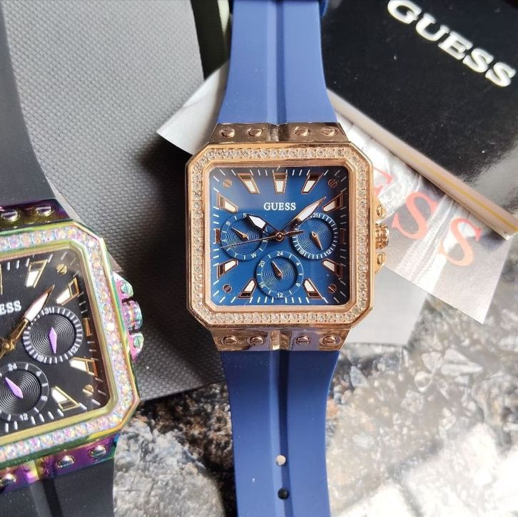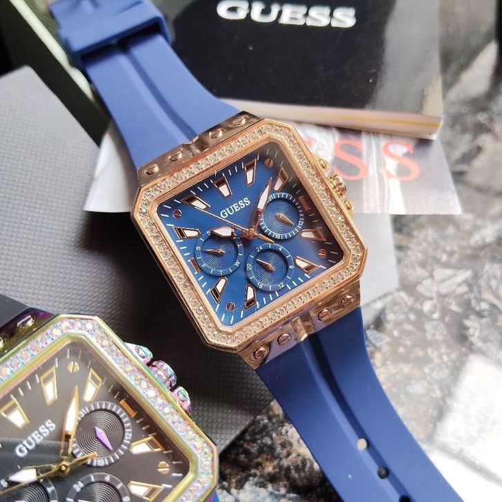 JAM TANGAN WANITA GUESS GW0618L2 ROSEGOLD BLUE RUBBER FREE ONGKIR - BOX ORIGINAL - GARANSI 1 TAHUN