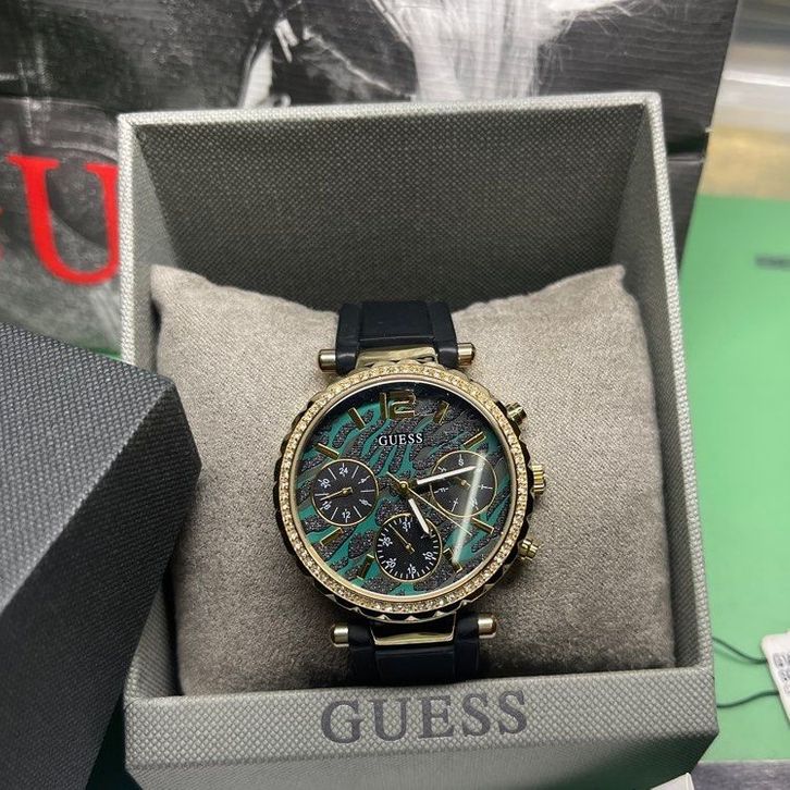 JAM TANGAN WANITA GUESS GW0113L1 BLACK MOTIF RUBBER FREE ONGKIR - FREE BOX