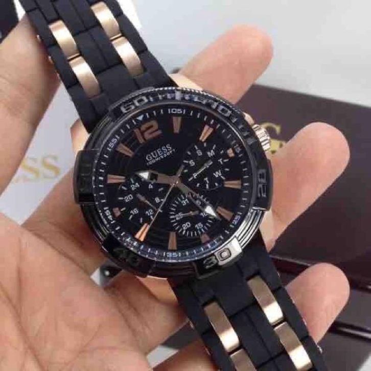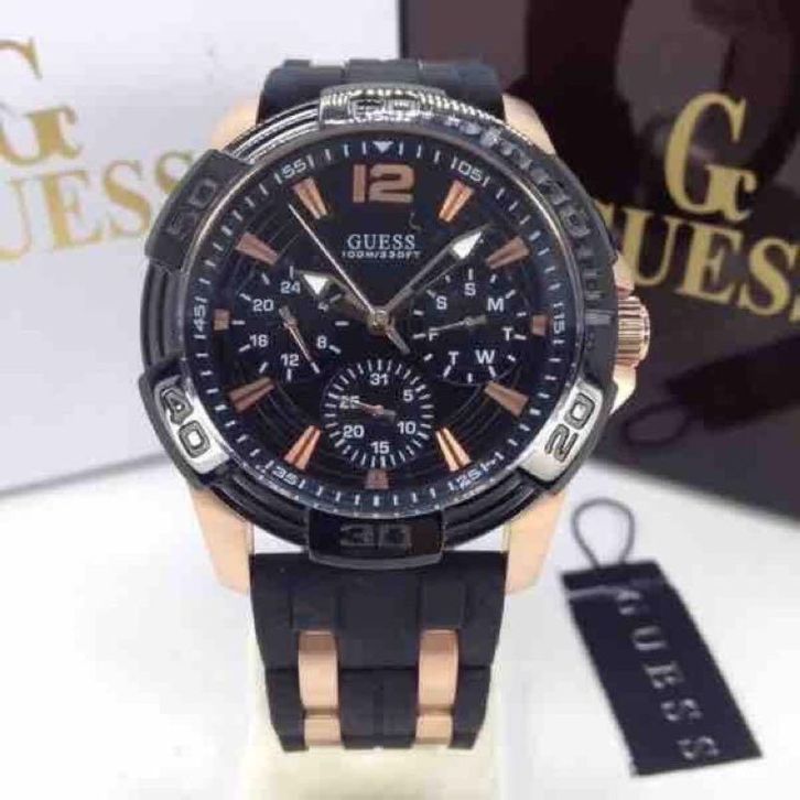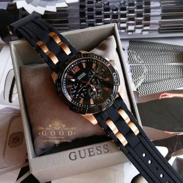 JAM TANGAN PRIA GUESS W0366G3 BLACK ROSEGOLD RUBBER FREE ONGKIR - BOX ORIGINAL - GARANSI 1 TAHUN