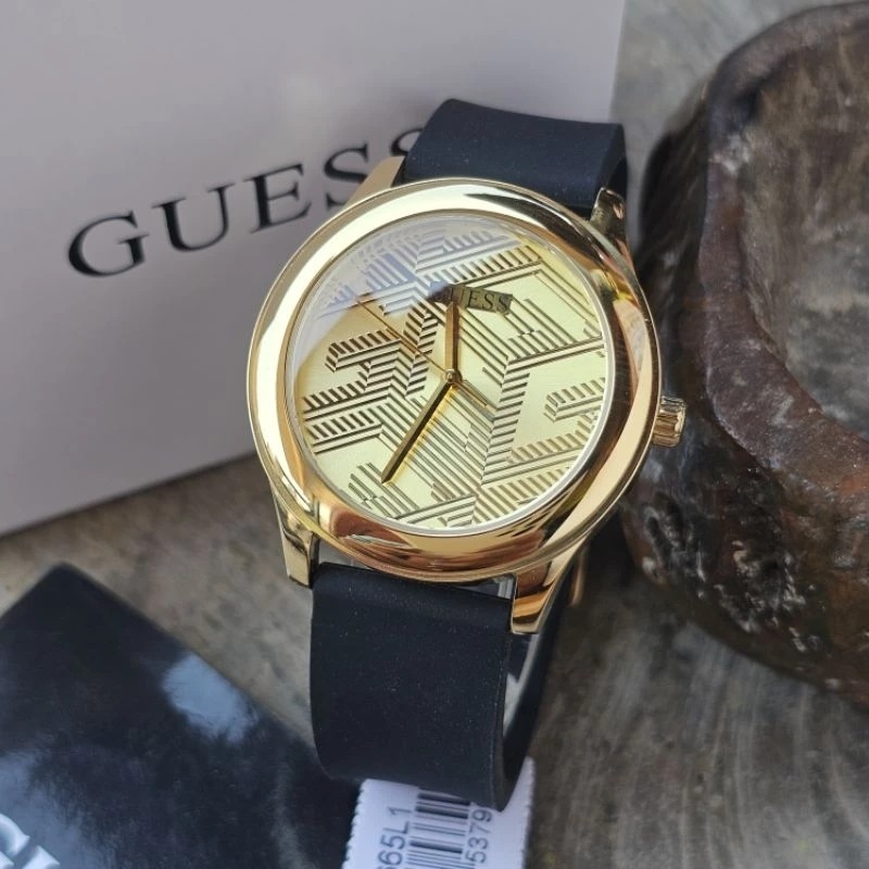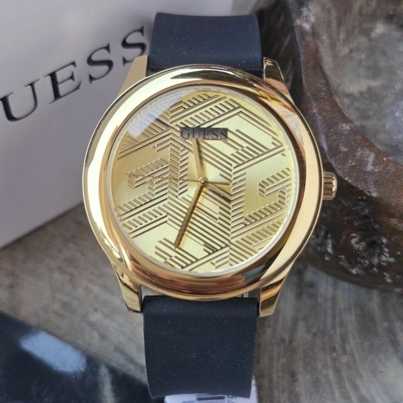 JAM TANGAN WANITA GUESS GW0109L1 ROSEGOLD BLACK RUBBER - FREE BOX BIASA FREE ONGKIR