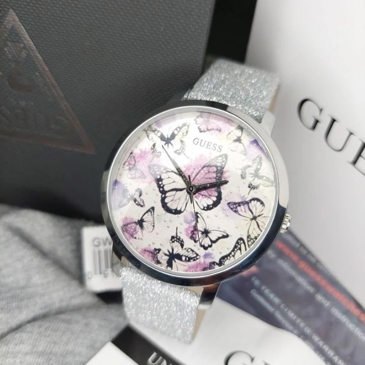 JAM TANGAN WANTTA GUESS GW0008L1 GLITTER SILVER LEATHER - FREE ONGKIR