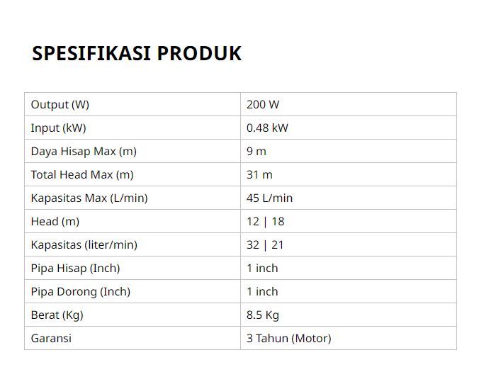 Pompa Air Shimizu PS221BIT - Non Auto 200 Watt