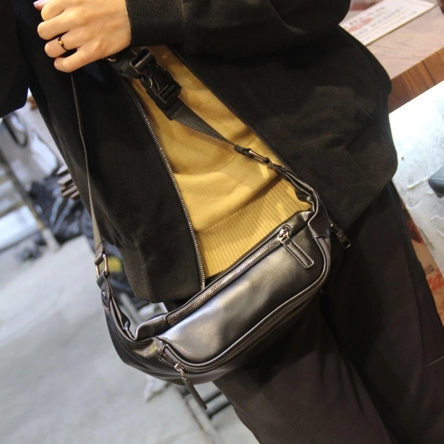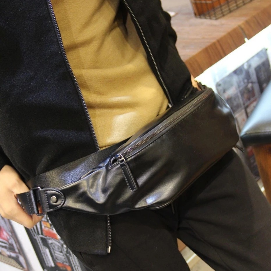 TAS PRIA KULIT VENOM HITAM Waist Bag Tas Selempang Tas Jalan - FREE ONGKIR - TERMURAH