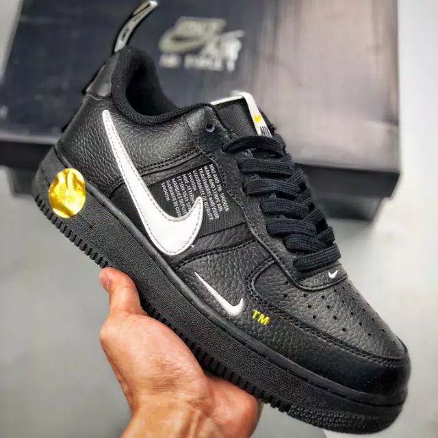 Nike Air Force One Utility All Black Sepatu Pria Sneakers Tali