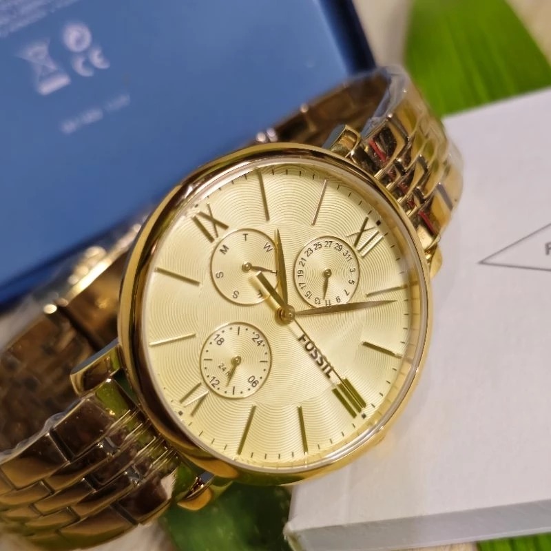 JAM TANGAN WANITA FOSSIL ES5143 / ES 5143 GOLD STAINLESS STEEL BROWN- FREE ONGKIR