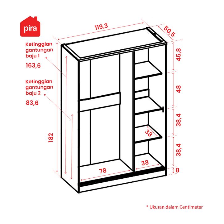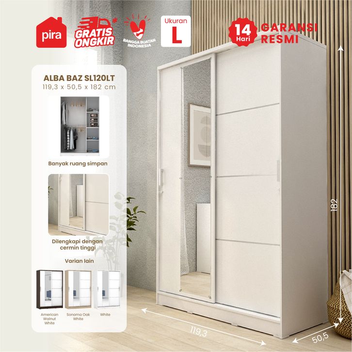 Pira Metropolis - Alba BAZ SL120LT Lemari Pakaian 2 Pintu Geser