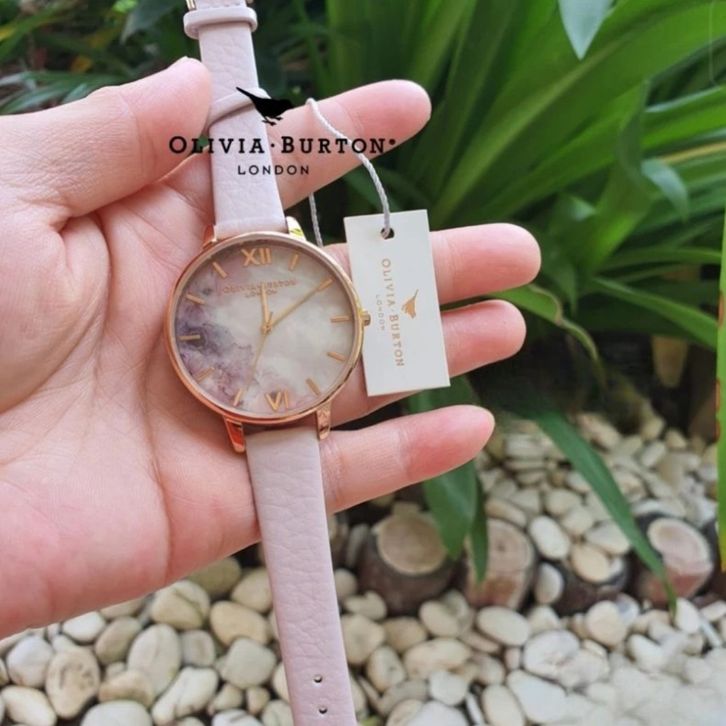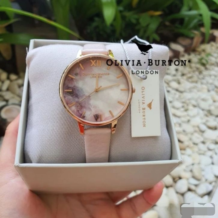 JAM TANGAN WANITA OLIVIA BURTON LONDON MARBLE FLORALS ROSEGOLD LEATHER PINK - FREE ONGKIR - FREE BOX ORIGINAL