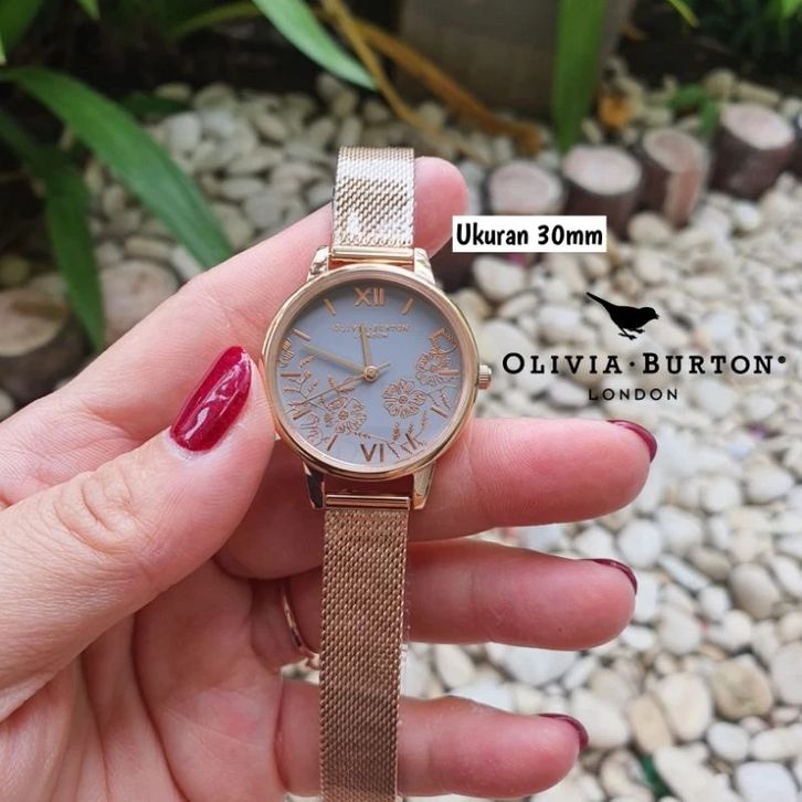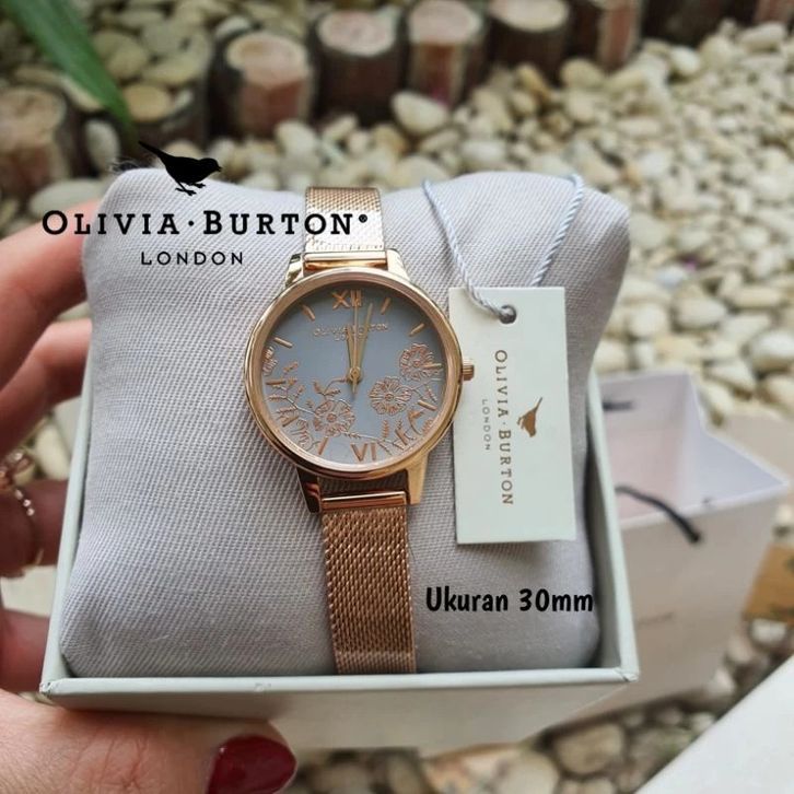 JAM TANGAN WANITA OLIVIA BURTON LONDON FLOWER ROSEGOLD BLUE STAINLESS STEEL - FREE ONGKIR - FREE BOX ORIGINAL
