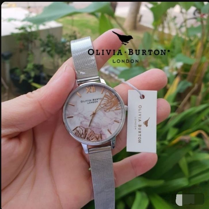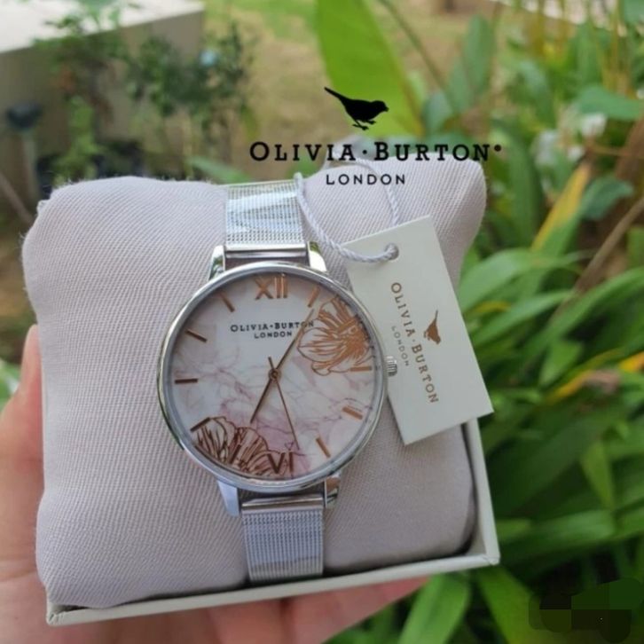JAM TANGAN WANITA OLIVIA BURTON LONDON FLOWER SILVER PINK STAINLESS STEEL - FREE ONGKIR - FREE BOX ORIGINAL