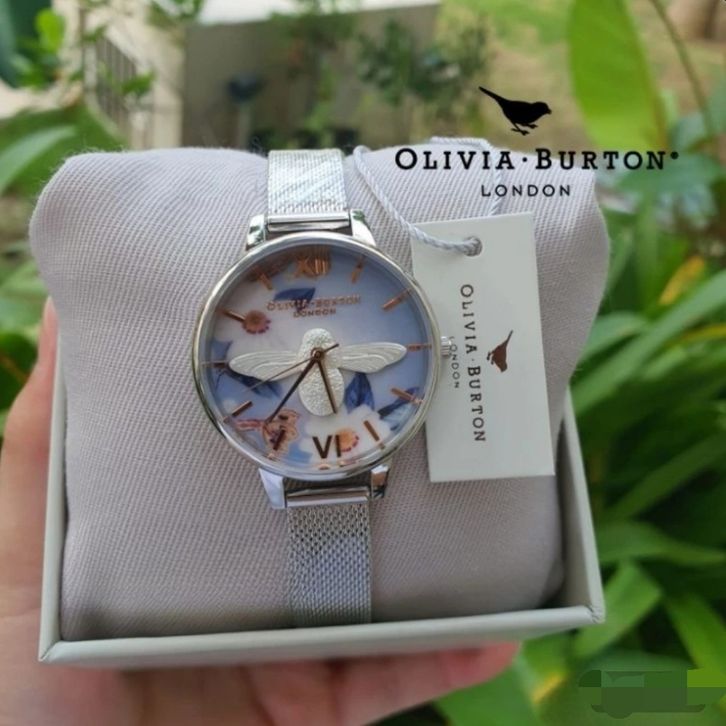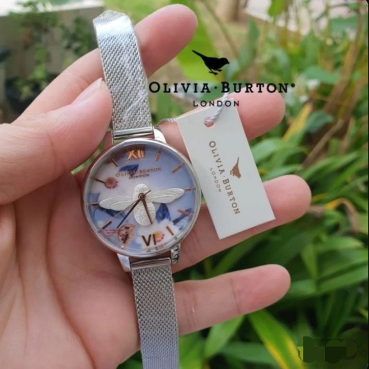JAM TANGAN WANITA OLIVIA BURTON LONDON BUTTERFLY WHITE SILVER BLUE STAINLESS STEEL - FREE ONGKIR - FREE BOX ORIGINAL