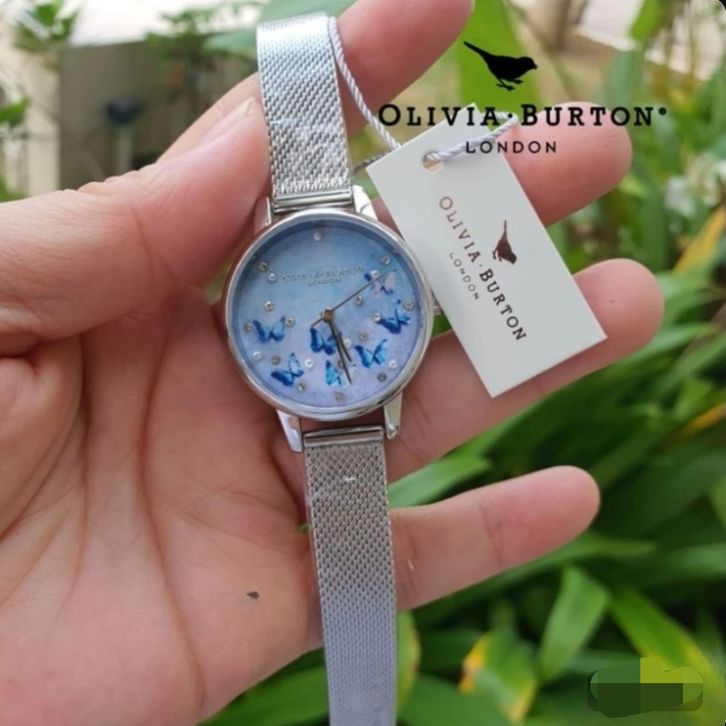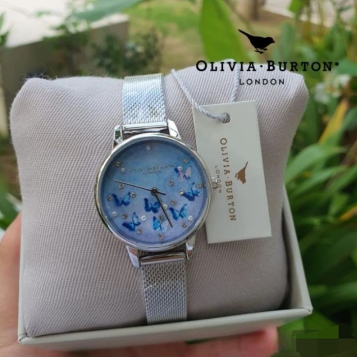 JAM TANGAN WANITA OLIVIA BURTON LONDON BUTTERFLY SILVER BLUE STAINLESS STEEL - FREE ONGKIR - FREE BOX ORIGINAL