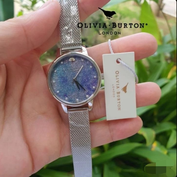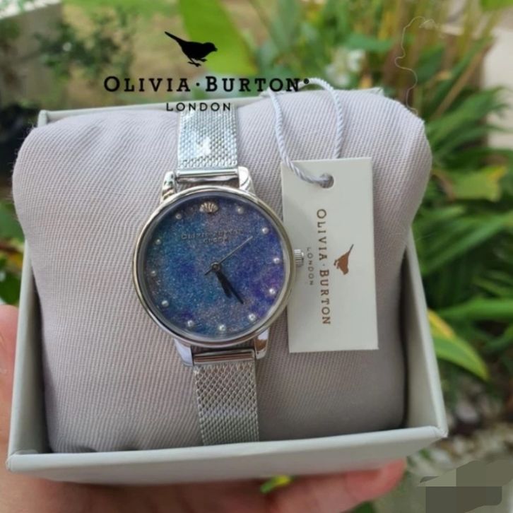 JAM TANGAN WANITA OLIVIA BURTON LONDON SAND SILVER BLUE STAINLESS STEEL - FREE ONGKIR - FREE BOX ORIGINAL