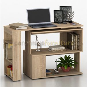 PanenRaya Meja Kerja Multishape Stacey 110x40x75 White / Sonoma Oak / Walnut