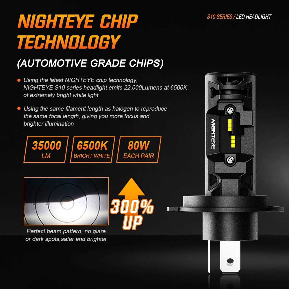 Nighteye S10 H4 H7 H11 9005 9006 80W/pair 35000LM Bohlam Lampu Depan