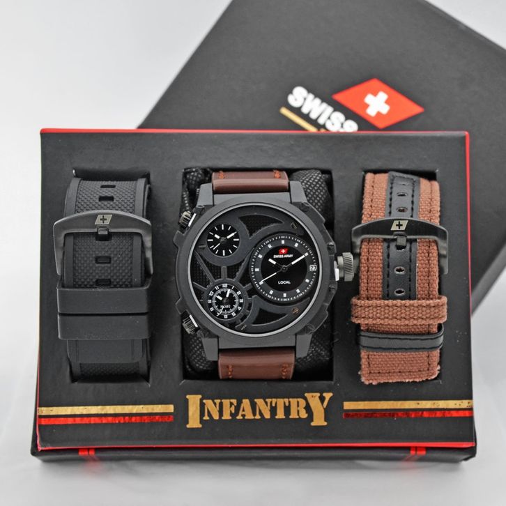 Swiss Army Infantry Triple Time Free Strap Kanvas + Rubber + Box