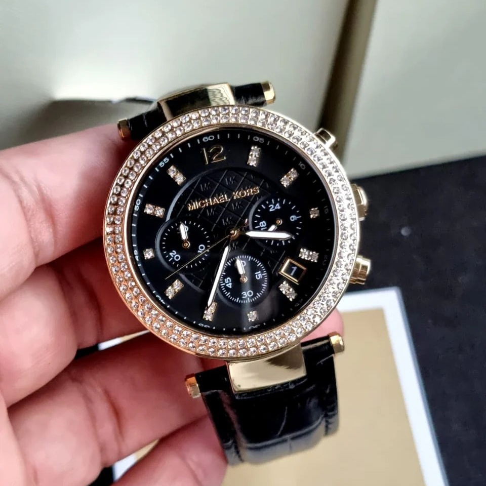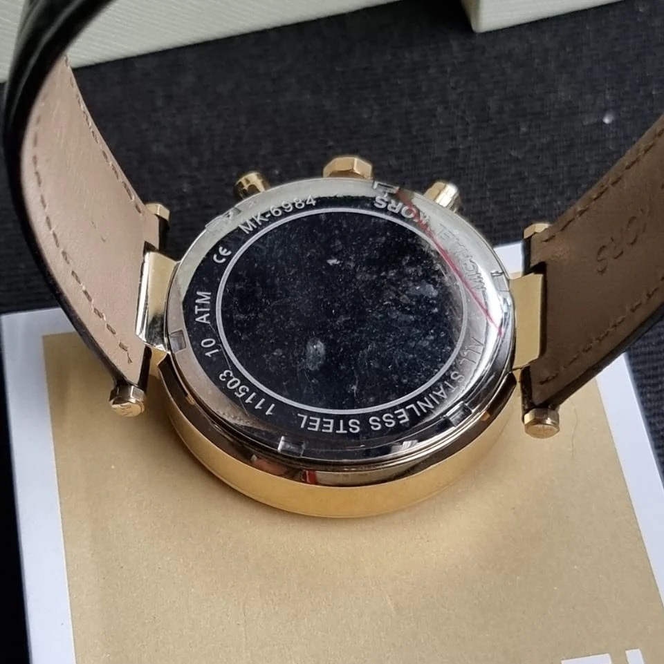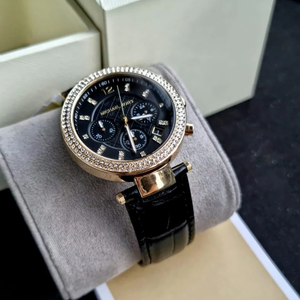 JAM TANGAN WANITA MICHAEL KORS MK 6984 / MK6984 ROSEGOLD BLACK LEATHER FREE ONGKIR - FREE BOX ORIGINAL
