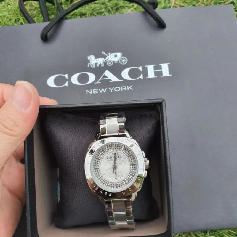 JAM TANGAN WANITA COACH CLASSIC BOYFRIEND SILVER STAINLESS STEEL - FREE BOX BIASA FREE ONGKIR