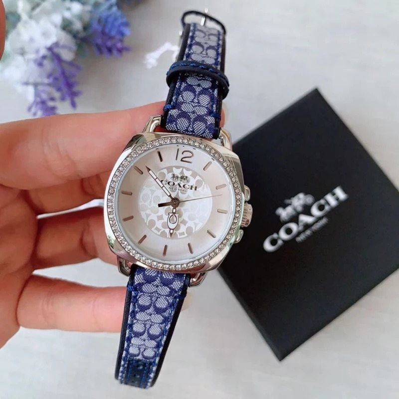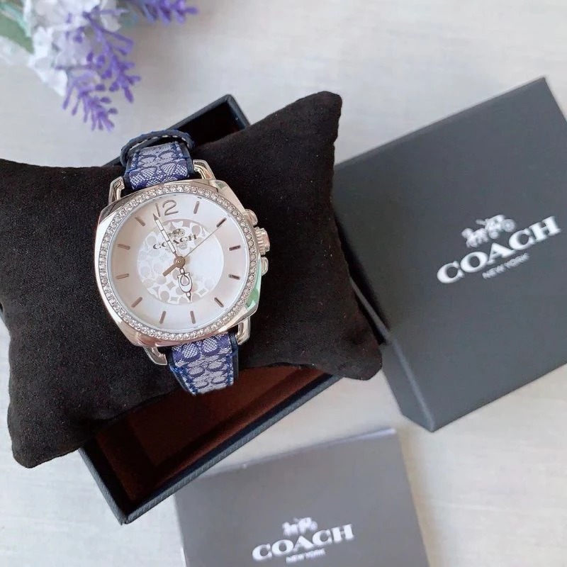 JAM TANGAN WANITA COACH 14503149 SILVER BLUE LEATHER - FREE BOX BIASA FREE ONGKIR