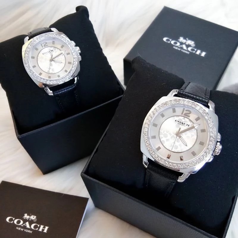JAM TANGAN WANITA COACH 14503152 SILVER BLACK LEATHER - FREE BOX BIASA FREE ONGKIR