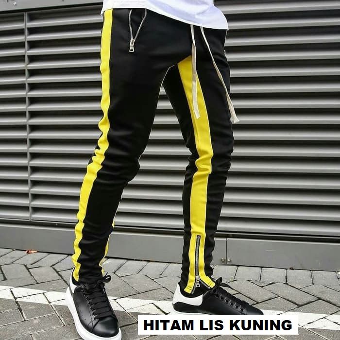 CELANA JOGGER PANTS HYPEBEAST SWEATPANTS TRACKPANTS HYPE STREETWEAR BLACK WHITE ZIPPER DOUBLE LIST