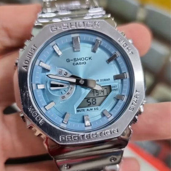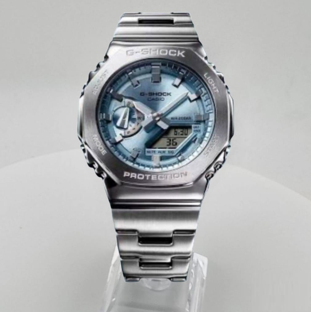 JAM TANGAN PRIA CASIO G-SHOCK GA-2110D SILVER BLUE STAINLESS STEEL FREE ONGKIR - FREE BOX ORIGINAL