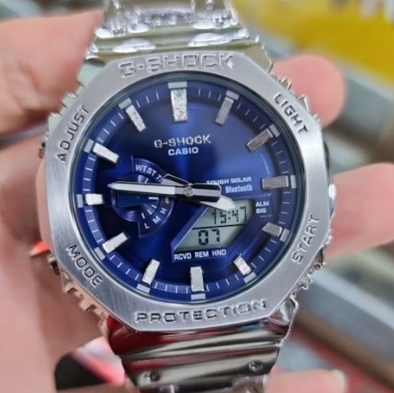 JAM TANGAN PRIA CASIO G-SHOCK GA-2110D SILVER NAVY STAINLESS STEEL FREE ONGKIR - FREE BOX ORIGINAL