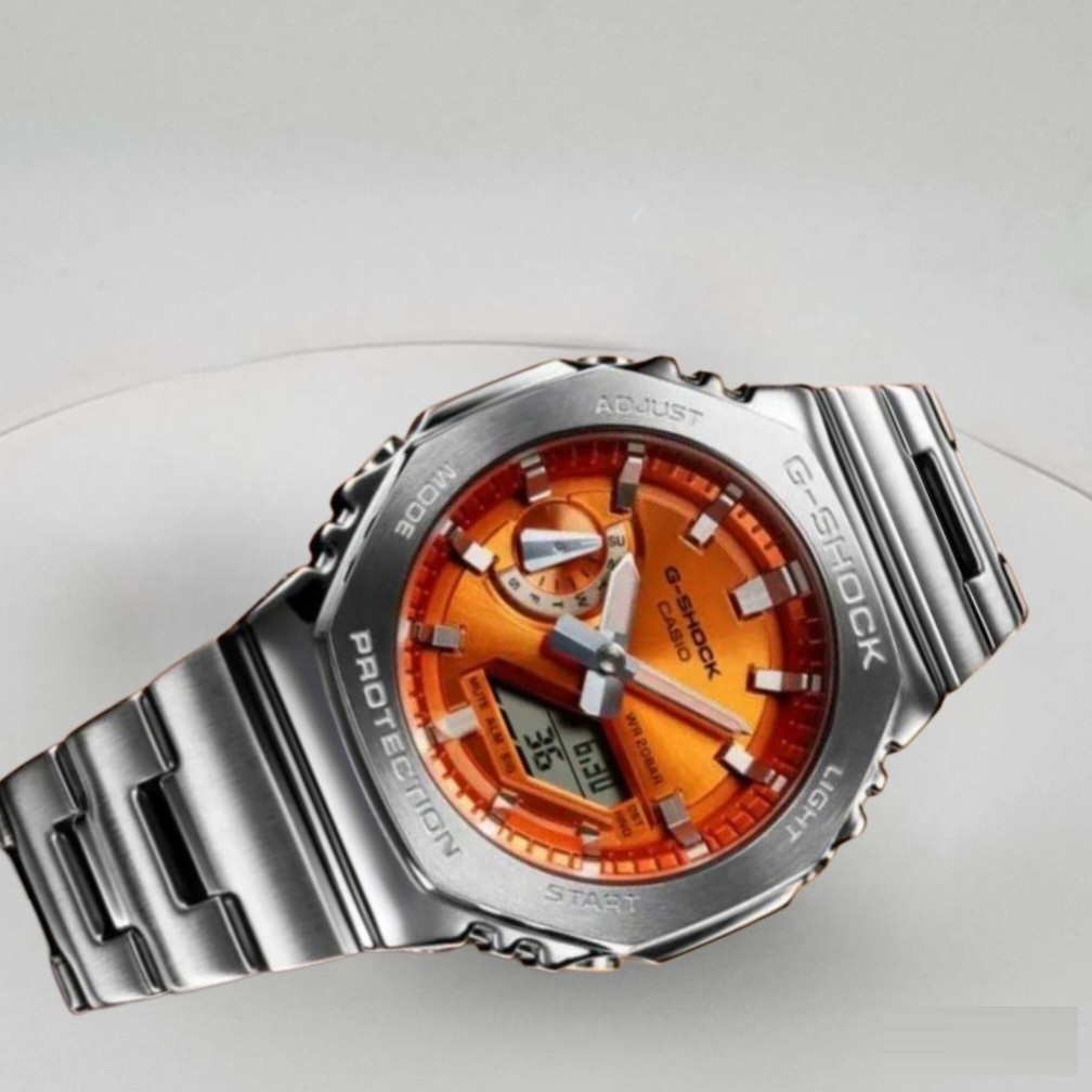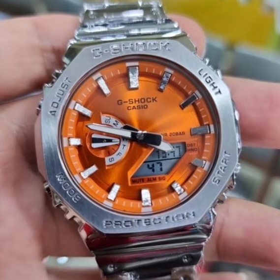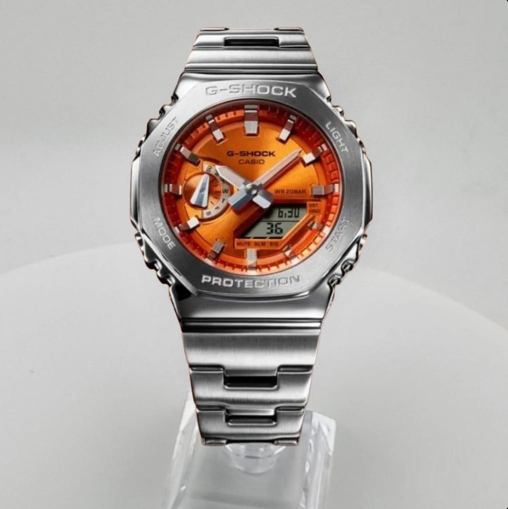 JAM TANGAN PRIA CASIO G-SHOCK GA-2110D SILVER ORANGE STAINLESS STEEL FREE ONGKIR - FREE BOX ORIGINAL