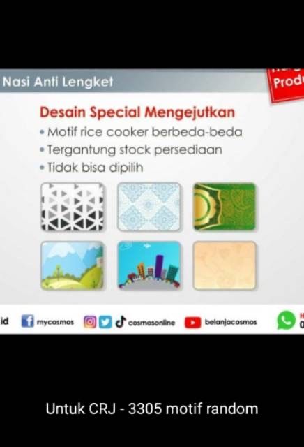 COSMOS RICE COOKER CRJ3305 CRJ 3305 SURPRICE SERIES 1.8L MOTIVE RANDOM
