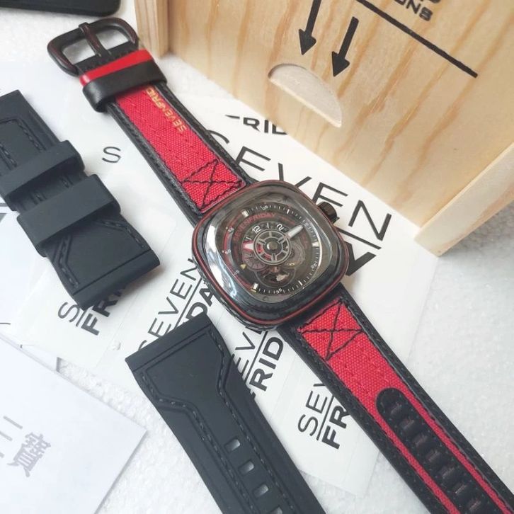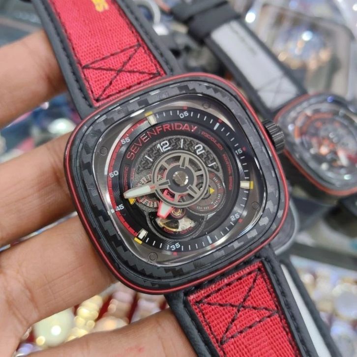 JAM TANGAN PRIA SEVENFRIDAY P3C/04 BLACK RED CARBON AUTOMATIC- FREE ONGKIR - FREE BOX ORIGINAL
