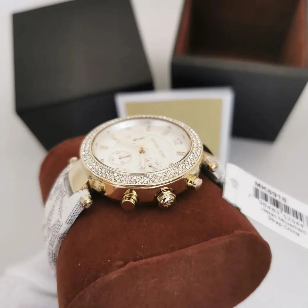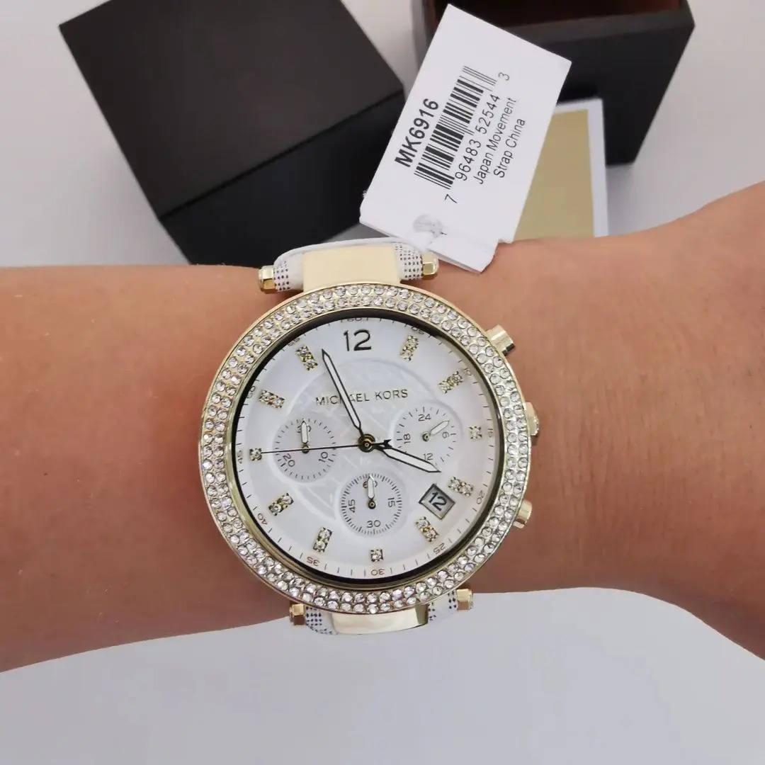 JAM TANGAN WANITA MICHAEL KORS MK 6916 / MK6916 ROSEGOLD WHITE LEATHER FREE ONGKIR - FREE BOX ORIGINAL