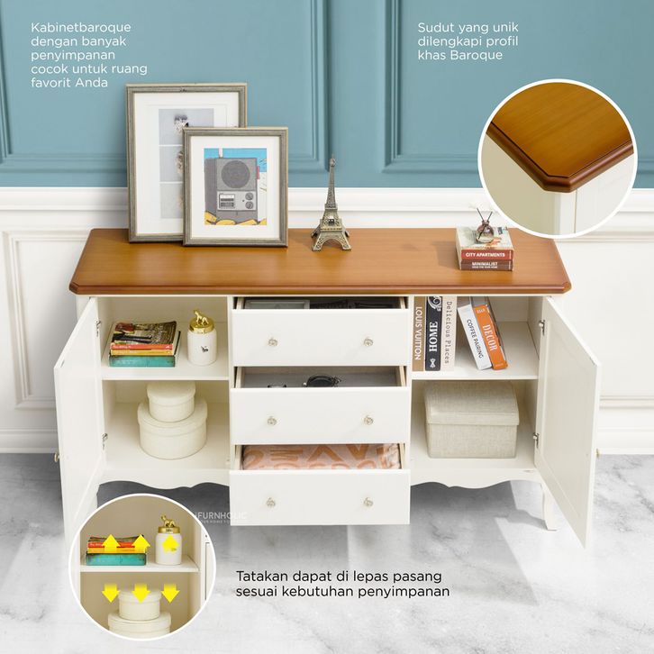 iFURNHOLIC Baroque Sideboard I Lemari Laci Klasik I Kabinet Laci Kayu I Lemari Buffet - 150x40x85 cm