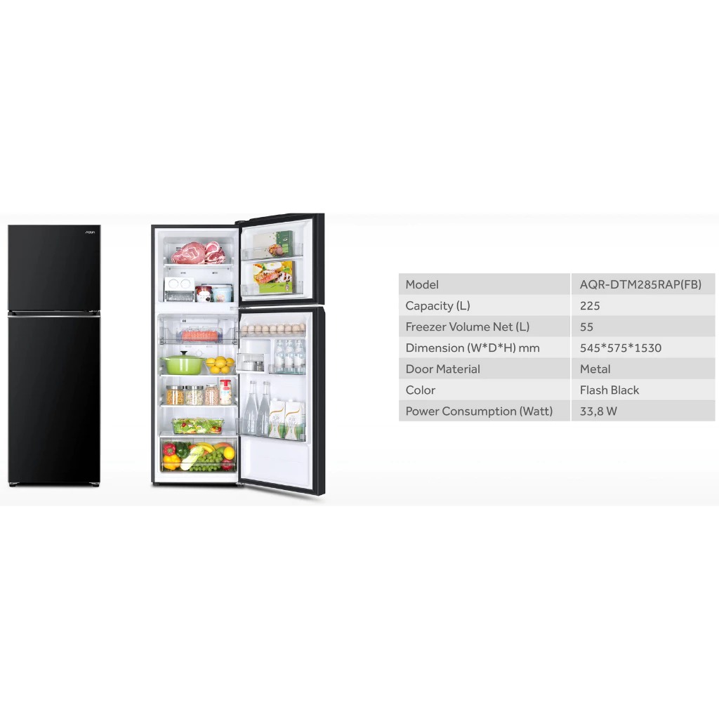 Kulkas 2 Pintu Aqua inverter AQR-DTM285RA No FRost (Tanpa Bunga Es )