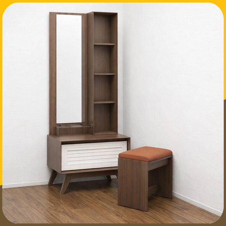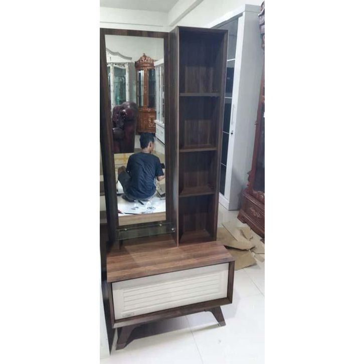PanenRaya Graver Viral MR 2126 Meja Rias 1 Laci Colombia Walnut Dengan Cermin dan Kursi Puff 70x40x170