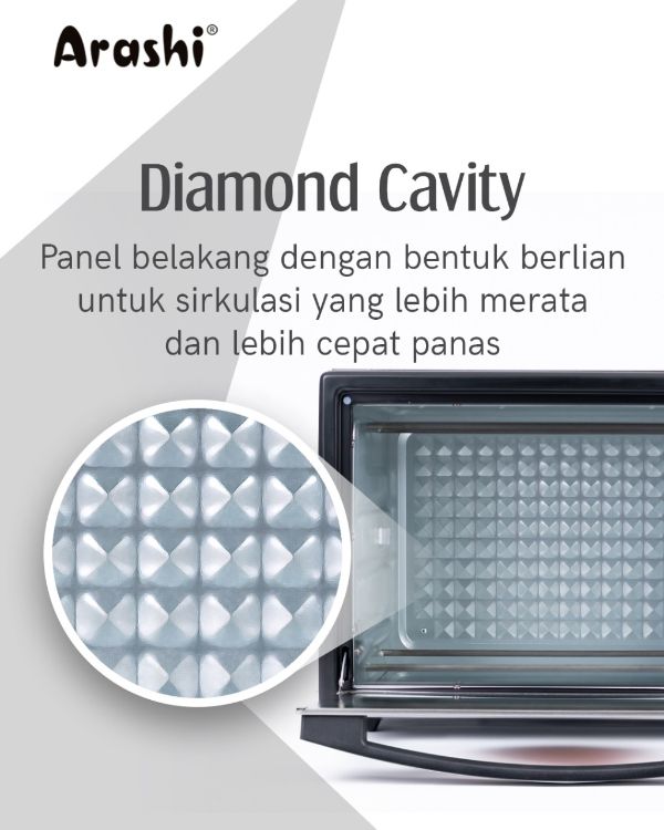 Arashi oven Toaster Listtrik 33 Liter PIZZA C33A Lampu stanlist Stell